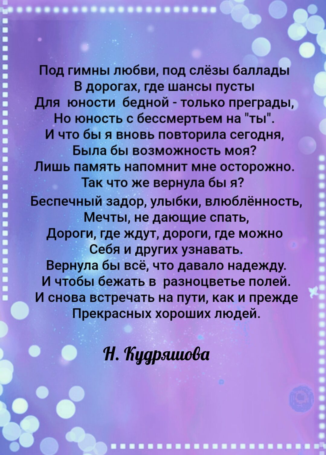 Но юность с бессмертьем на "ты".