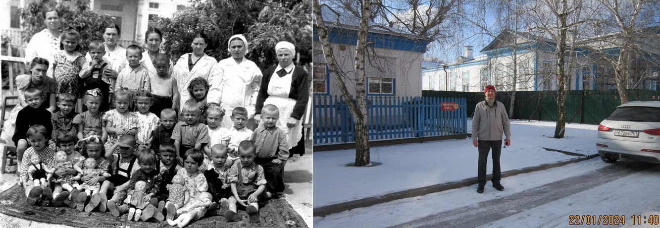Если смотреть на фото с правой стороны, это автор, фото от 22.01.2024 года. Если смотреть на фотографию детского сада, с правой сторона снизу, во втором ряду автор пятый.