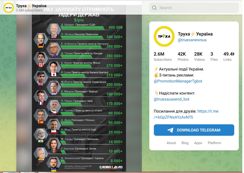 На канале Труха Украина зарплаты лидеров стран считают,