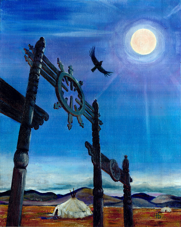 Картина Натальи Баенхаевой "Триптих Ысыах. II Встреча солнца"