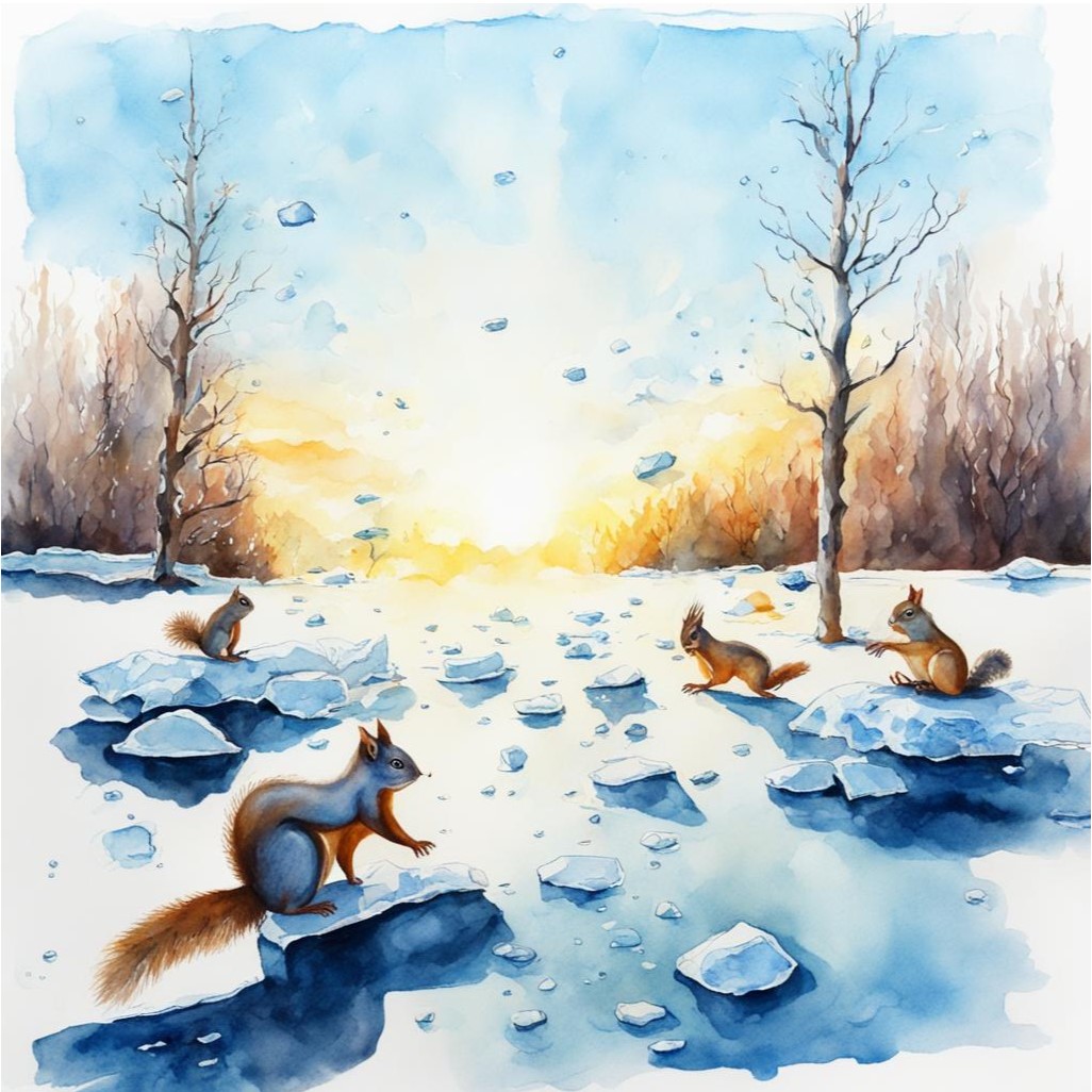 Белки прыгают на ветках,