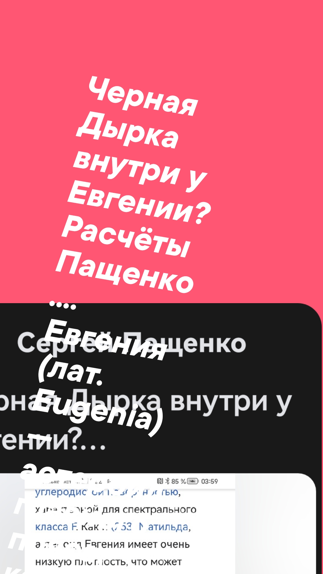 Черная Дырка внутри у Евгении? Расчёты Пащенко