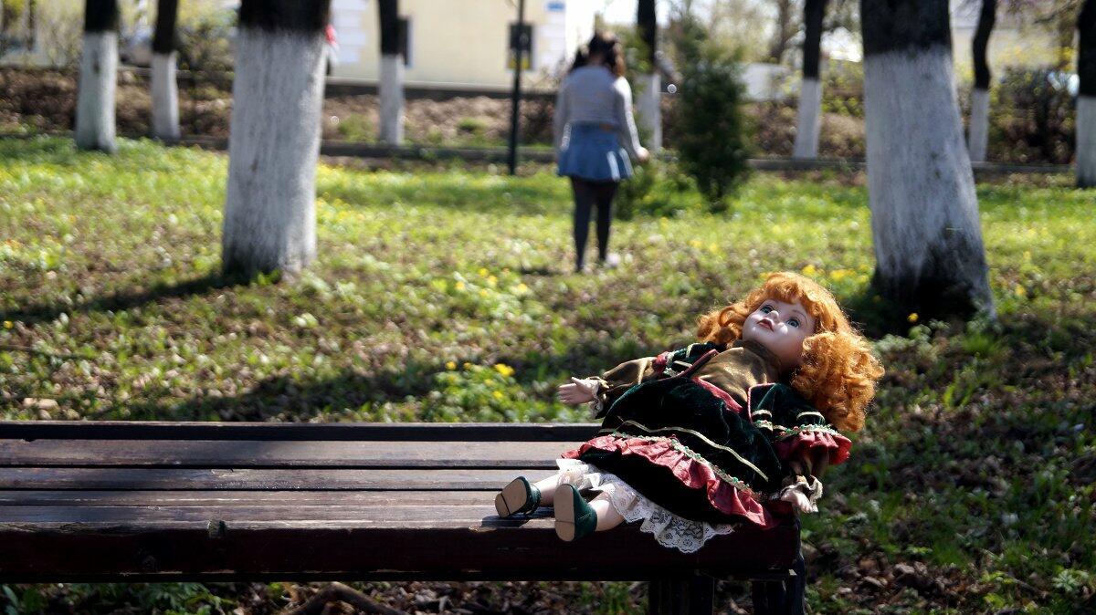 Случайно оставила куклу хозяйка.