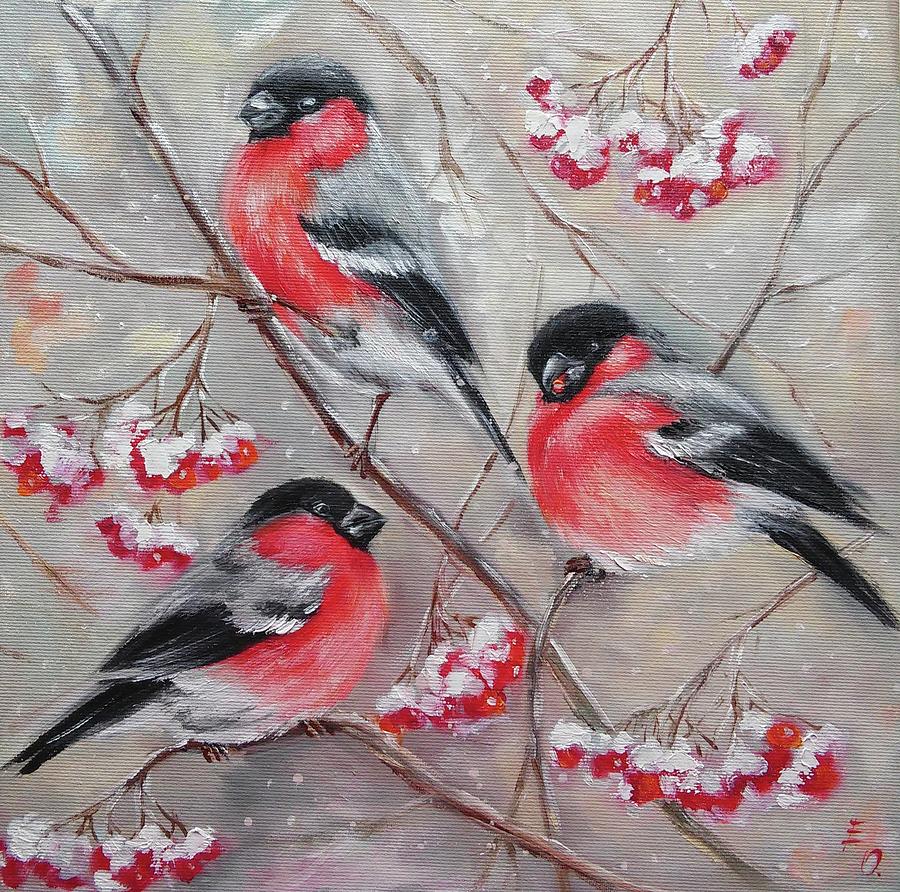 Н/а ветках снегири, словно гусары,