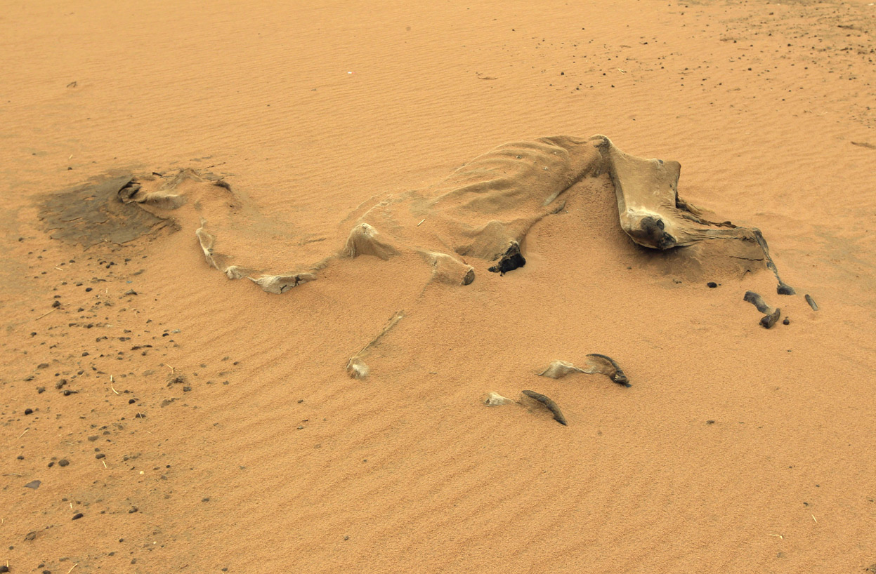 Над пустыней нависло бездонное чёрнае небо. В его глубине мерцали холодные и колючие равнодушные звезды. Песчинки шуршали, скрипели, скреблись, натыкаясь на белые маленькие купола черепов, разбросанных по волнистой поверхности бархана. Рядом покоились иссушенные кости. Это были останки четырех неудачлиывх авантюристов. На некотором расстоянии скалил кривые зубы уродливый череп верблюда, откатившийся от костяка с клочьями облезлой шкуры Тут же горбился истлевший багажный мешок. Второй верблюд исчез без следа. Когда-то люди вышли из большого оазиса. Старожилы удивлённо подсмеивались над ними. Весь внешний вид и поведение пришельцев говорили об их самоуверенной беспечности. Никто не знал их имён, цели маршрута и причины пребывания в пустыне. Маленький караван из четырёх человек и двух верблюдов с поклажей вышел из оазиса затемно. Пятой должна была быть молодая женщина, подражавшая героиням дешевых приключенченческих романов начала двадцатого века. Однако укус неведомого зловредного насекомого привел ее в состояние истерики, результатом которой стал категорический отквз идти дальше. Она осталась, поджидая сбора большого каравана, чтобы вернуться к загадочной, лишь наполовину усмиренной, но казавшейся ей безопасной восточной цивилизации. Она даже не подозревала, что этим спасла свою жизнь. Перед выходом беспокойная четверка дня два рассматривала подозритедьные, старательно состаренные карты и поминала древних исследователей. Им во след бросили беззлобно - глупцы! По причине крайнего несходства характеров и темперамента они все время в пути спорили. Пустыня не прощает самоуверенных дилетантов. И вот теперь они, уже не зная об этом, были лишь собравшимися в последнем споре остАнками странной экспедиции. Их последние мысли ещё рассыпались сухой пеленой внутри выбеленных куполов, а пустые глазницы выискивали в череде барханов неведомую цель. В спешке они прошли мимо маленького оазиса нарасстоянии всего в пару дней пути, не доверившись чутью верблюдов. Они понадеялись на удачу и проиграли. Над ними вились черные призраки пустыни, которые, играя на неведомых инструментах, подражали тяжелой , медленной поступи верблюдов. А бесчисленные песчинки все шуршали скрипели и скреблись, натыкаюсь на выбеленные купола черепов. Пустыня не торопилась с погребением, ее время было бесконечно. Только неожиданный резкий ветер песчаной бури мог поторопить её. Но ветра не было, и бескрайняя пустыня с чёрным бездонным и равнодушным шатром неба наблюдала, как холодный ночной воздух наполняет грудные клетки незадачливых путешественников, не вздымая их лишенные плоти ребра.