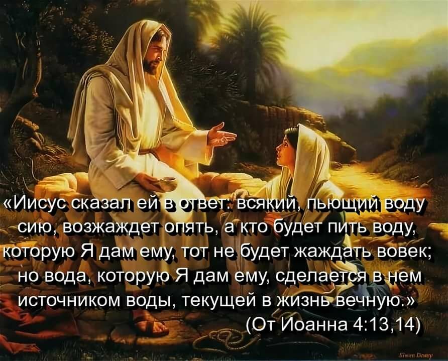 «A кто будет пить воду, которую Я дам ему, тот не будет жаждать вовек; но вода, которую Я дам ему, сделается в нем источником воды, текущей в жизнь вечную.» (Иоанна 4:14)