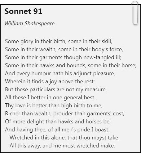 Сонет 91. Шекспир