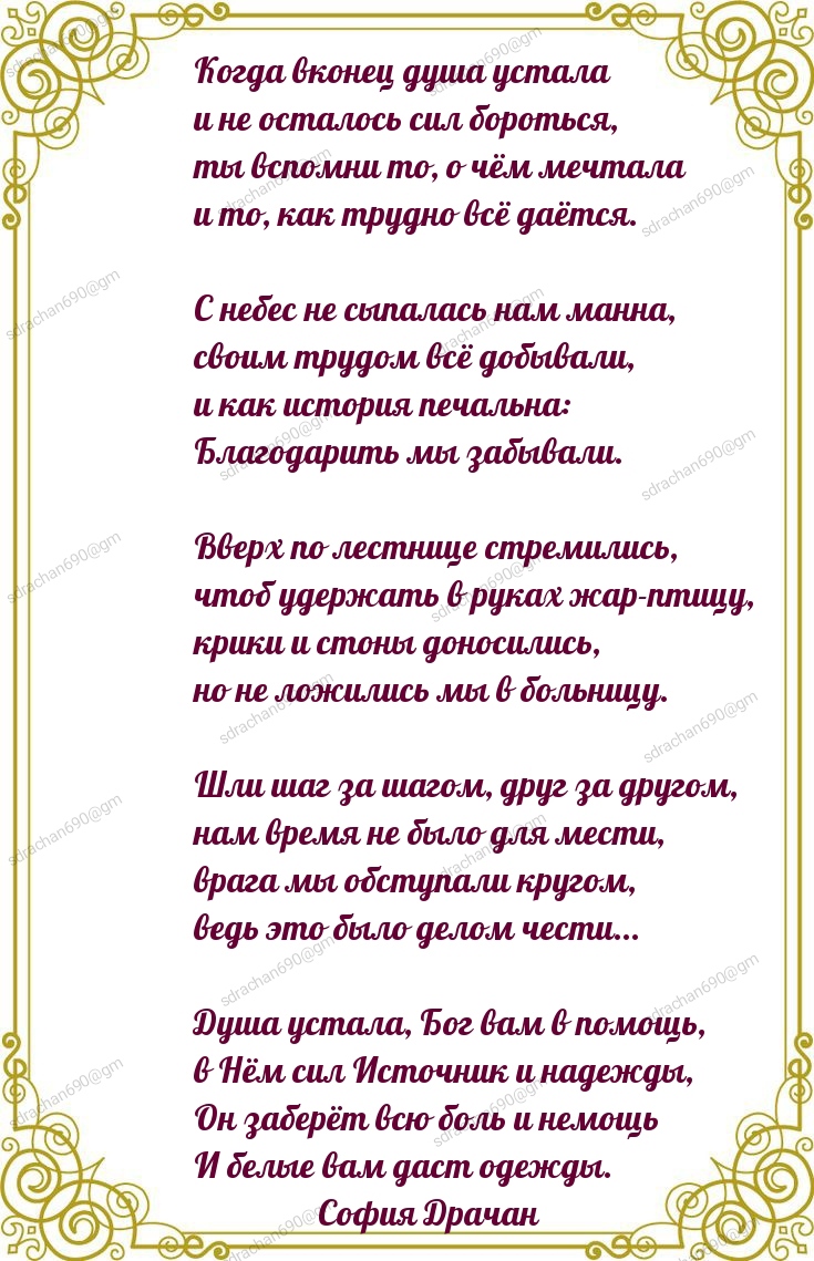 Душа устала, Бог вам в помощь,