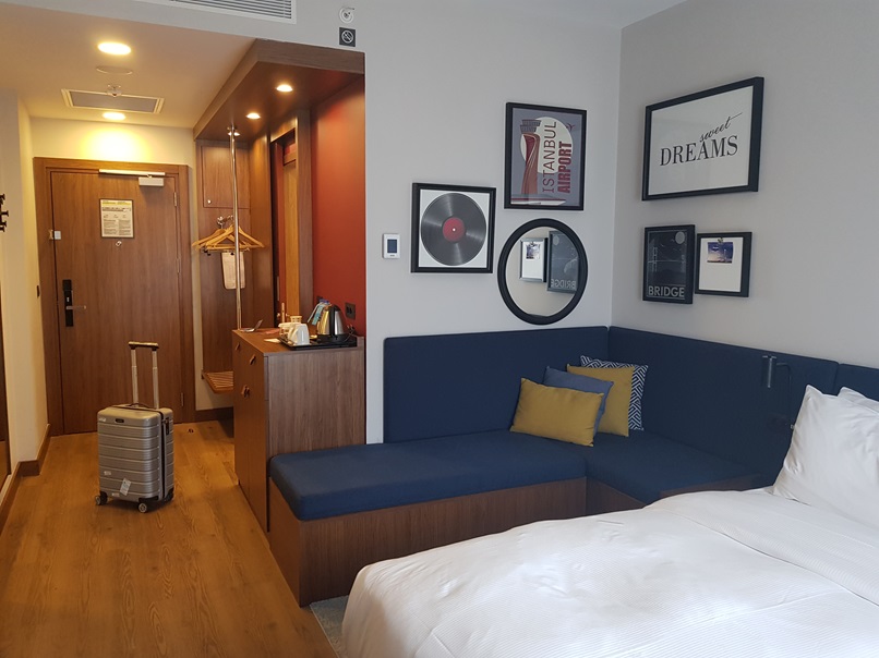 Номер в отеле великолепный - двухместная кровать, диванчик, чайник, чай-кофе, вода - я звоню мужу по ватсапу и, он сожалеет, что мы не вместе в таком чудесном отеле. Я так рада на самом деле, что лечу с перерывом, всё, что ни делается, всё к лучшему!