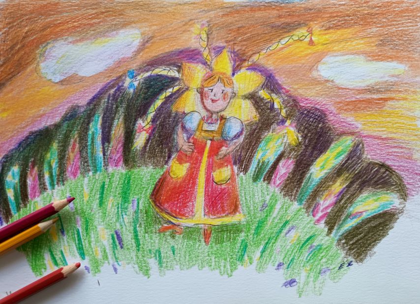 Носит красный сарафан,