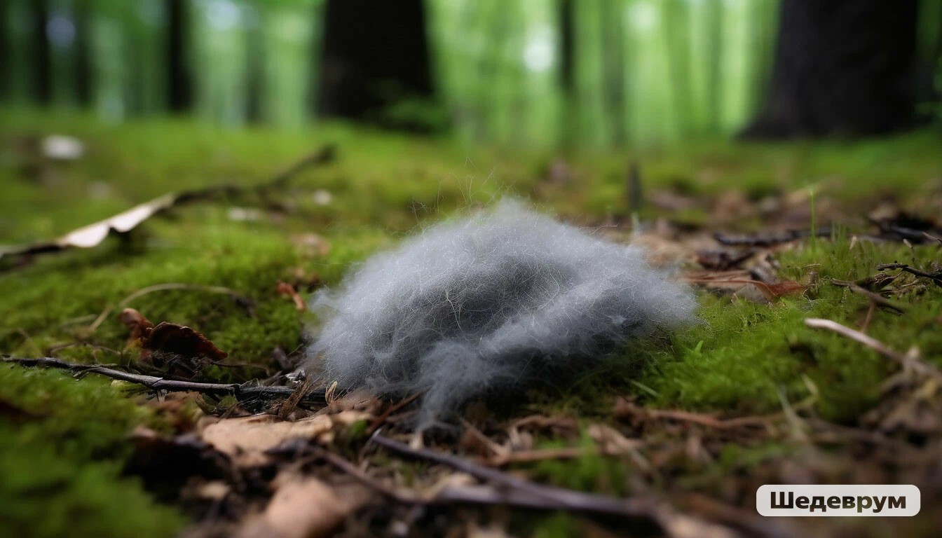 Клочки серой шерсти на примятой траве,