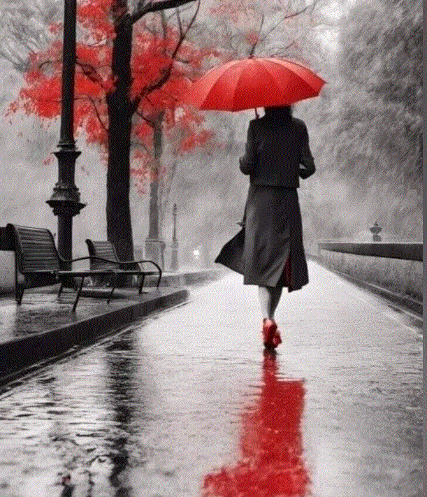 За ней по лужам цветная тень скользит,
