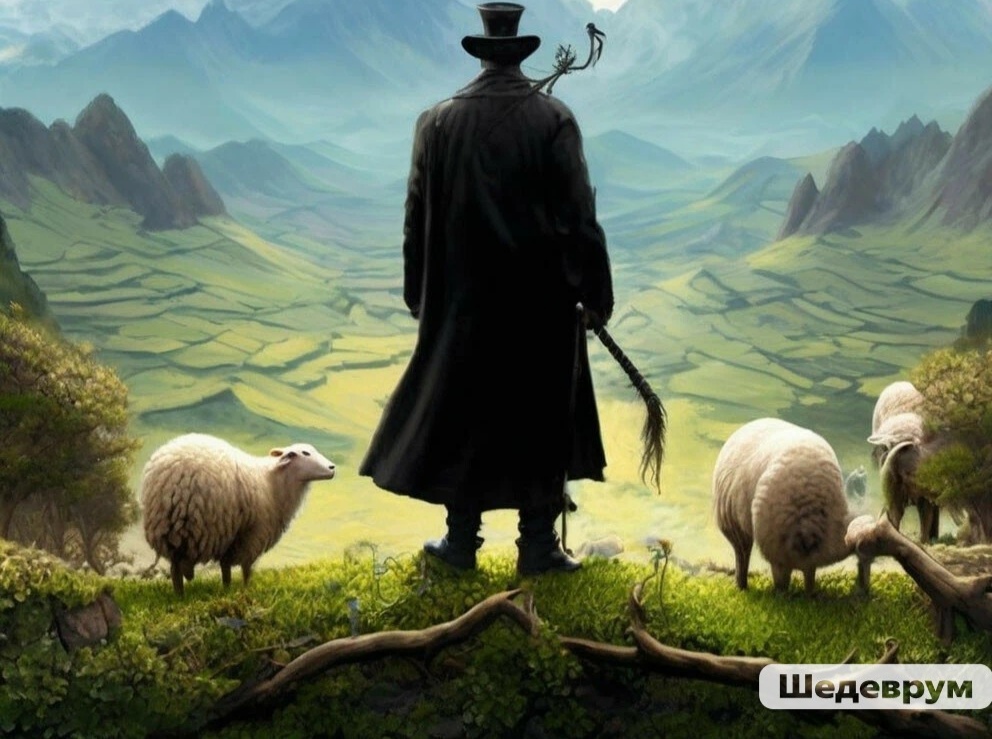 С кнутом, пастух, видать, отважный.