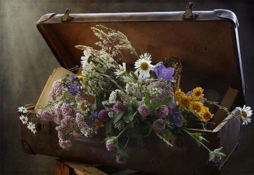 Цветы в дорожном чемодане,