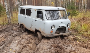 Водитель УАЗик заводит.