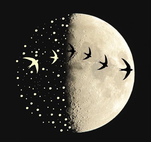 Черные птицы, как тени, на небе.