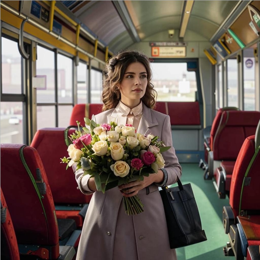 Подошла кондуктор томно.