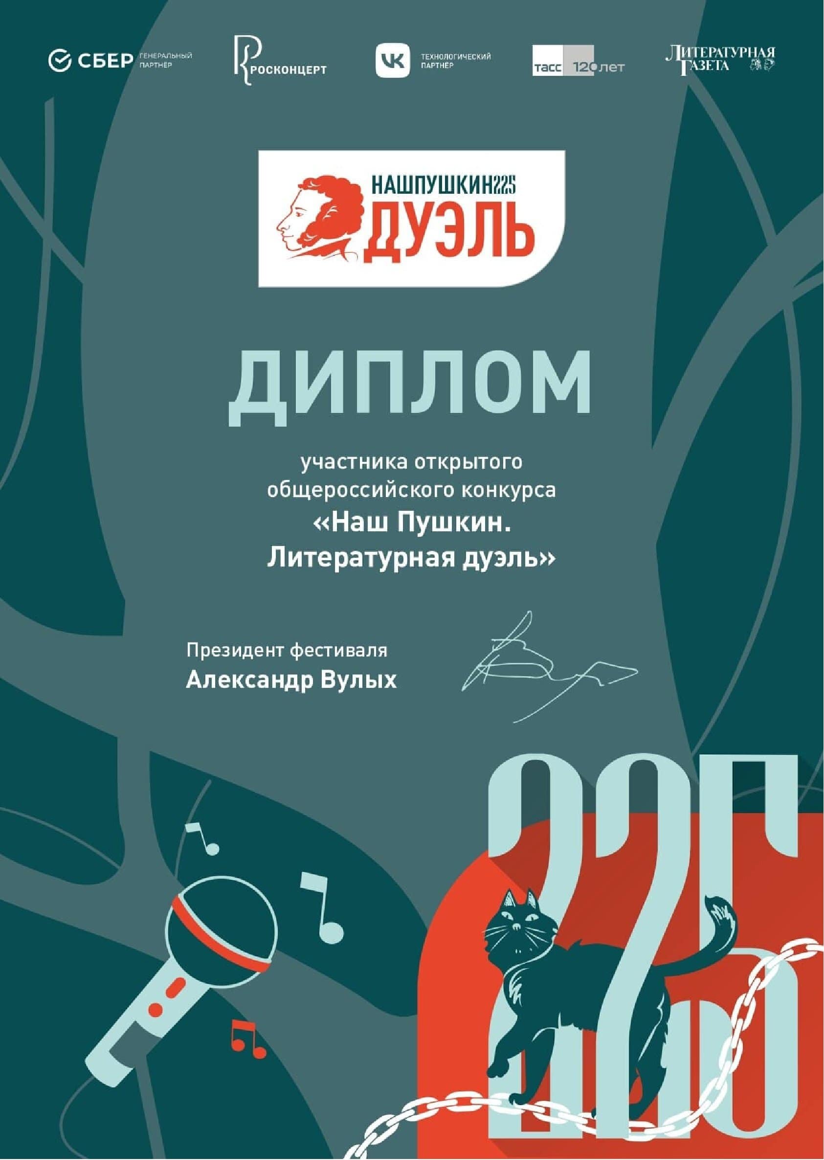 короче ладно я найду где им написать - прислали диплом участника Пушкинской дуэли - иногда участвую в конкурсах - и роскошному Алексею Валерьевичу Серебрякову, люблю только Алексея Валерьевича Серебрякова, обожаю и люблю только роскошного и шикарного нежного Гения Алексея Валерьевича Серебрякова!!!