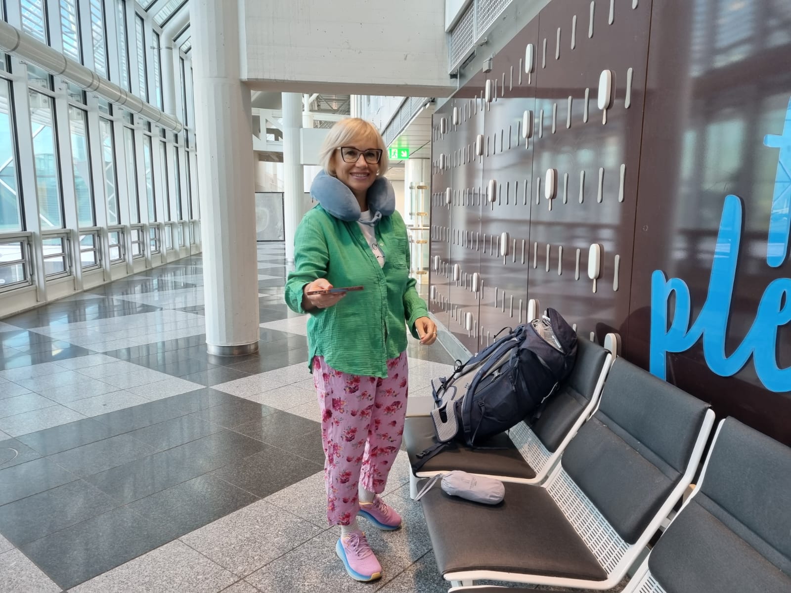 В аэропорту работают вовсю кондиционеры, приходится доставать всю тёплую одежду, у меня ее мало - рубашка с длинным рукавом и лёгкая куртка. Смотрите видео https://www.youtube.com/watch?v=szAu1uRn4pw Если видео не открывается, его можно посмотреть на моем Дзен канале по ссылке.