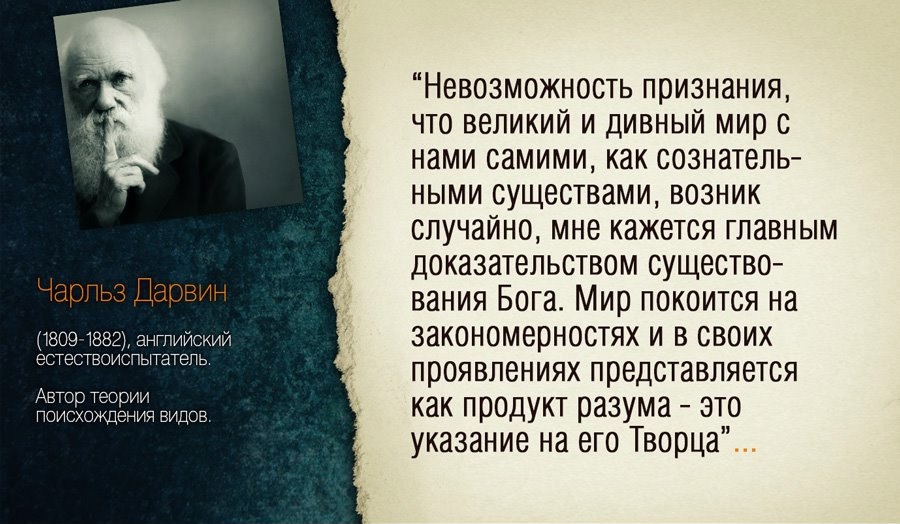 «Невозможность признания, что великий и дивный мир с нами самими, как сознательными существами, возник случайно, мне кажется главным доказательством существования Бога!»