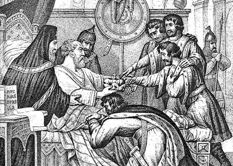 Ярослав Мудрый и его дети - Всеволод, Святослав, Изяслав.