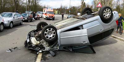 Мерседес разбитый крышей вниз,