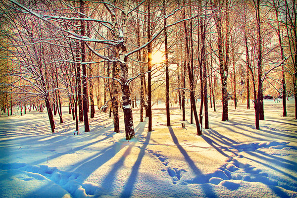 И тени посинели на снегу.