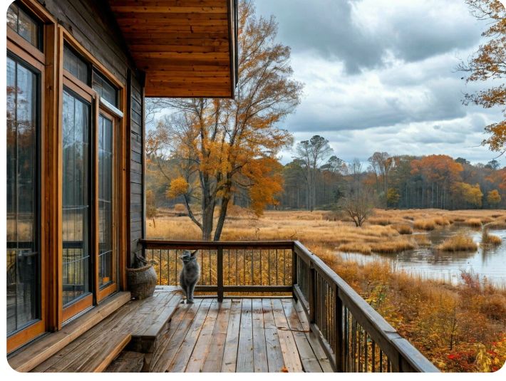Жмется к дому в ноябре