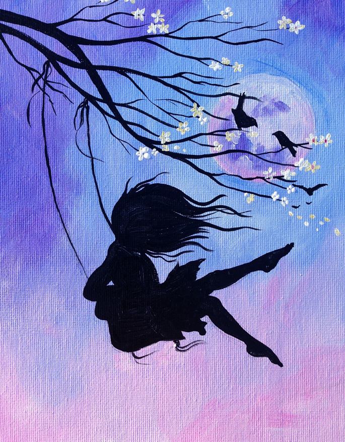 Порхает в платье невесомом на качелях!
