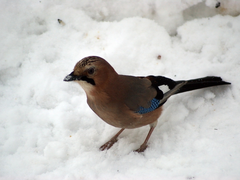 Сойка на снегу