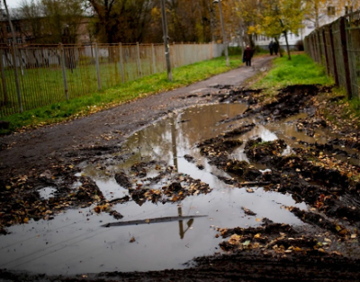 С крыши течет,дороги в лужах,