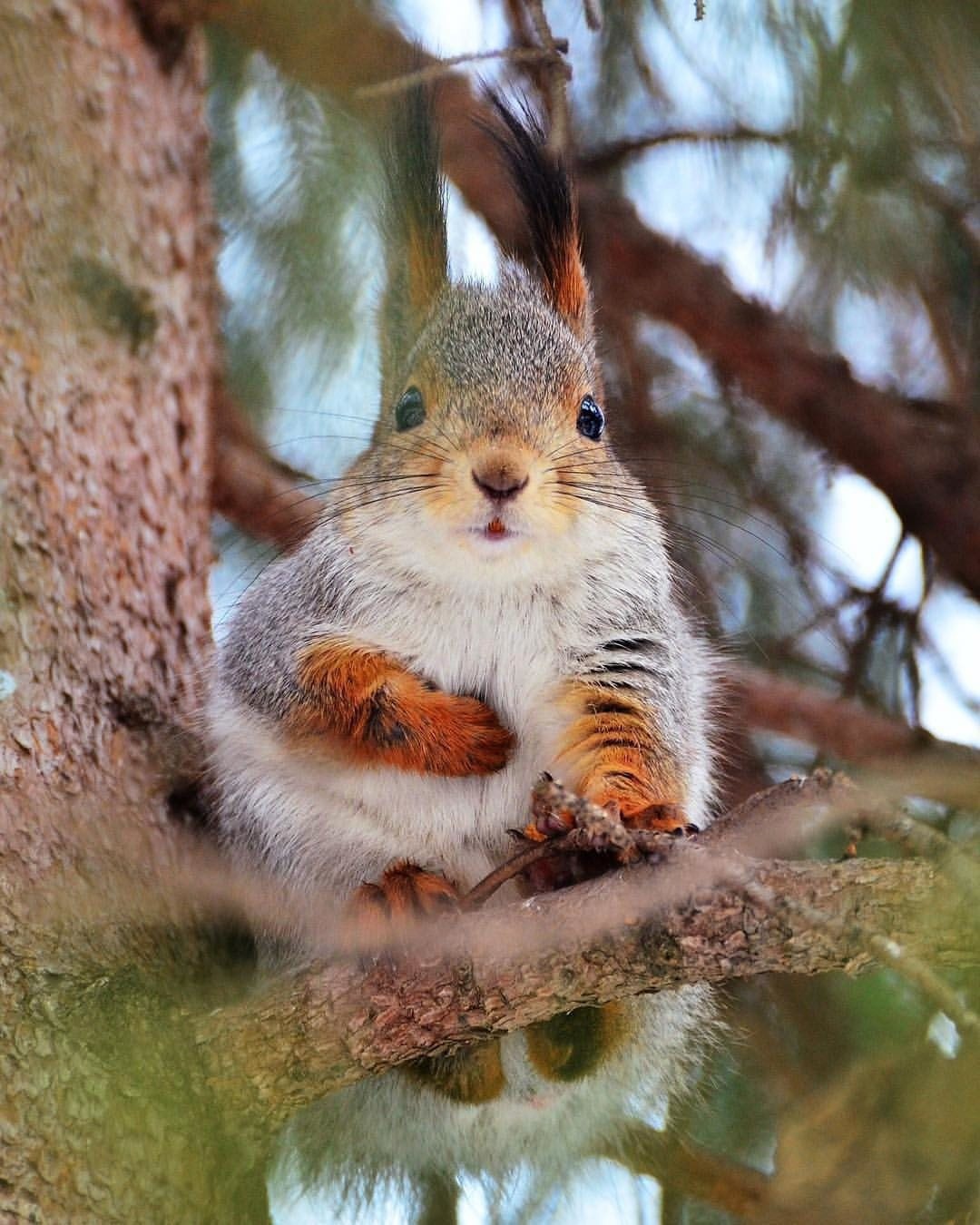 Серая шкурка, пушистенький хвостик.