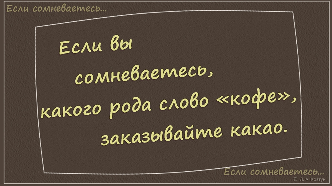 Если вы сомневаетесь какого рода слово «кофе», заказывайте какао.