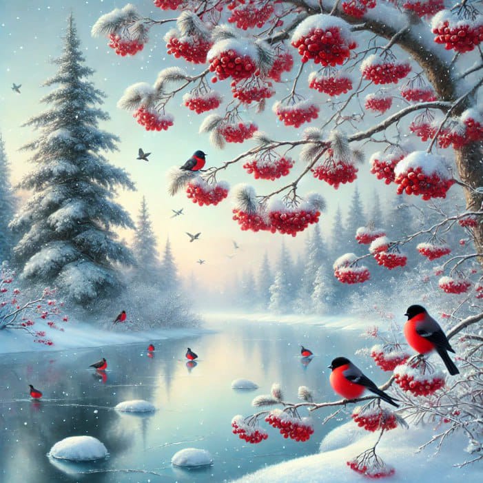 Стая красных снегирей