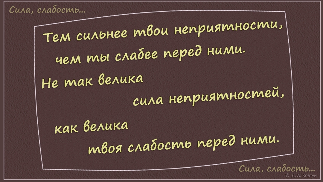 Тем сильнее твои неприятности, чем ты слабее перед ними.