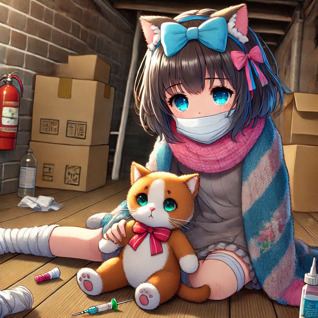 Играет больная девочка с серым котом