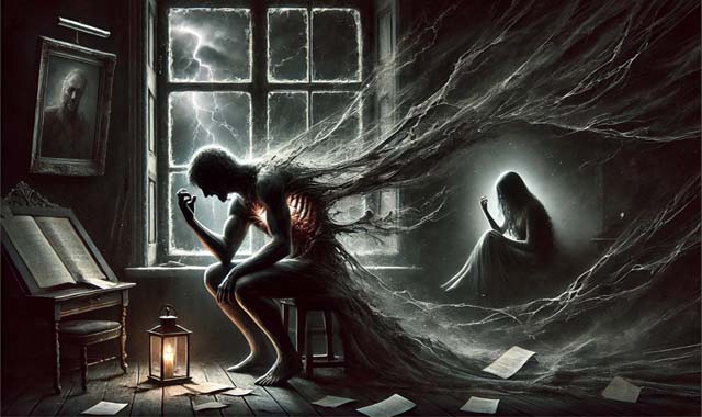Но слышит только шорох тёмного кошмара.