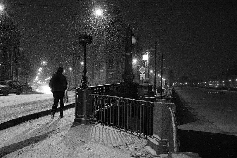 Прохожего легонько подгоняет.