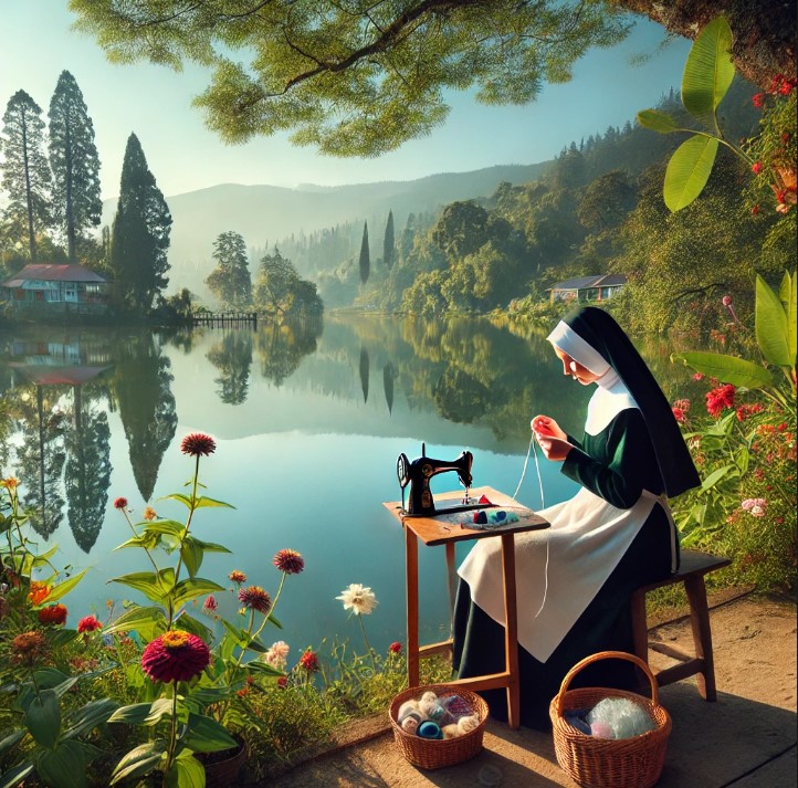И монашка с чудом рукоделья,