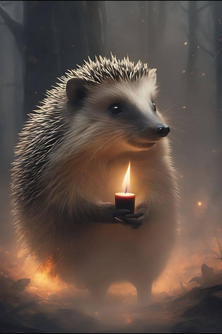 ёжик со свечой в лесу. Pinterest