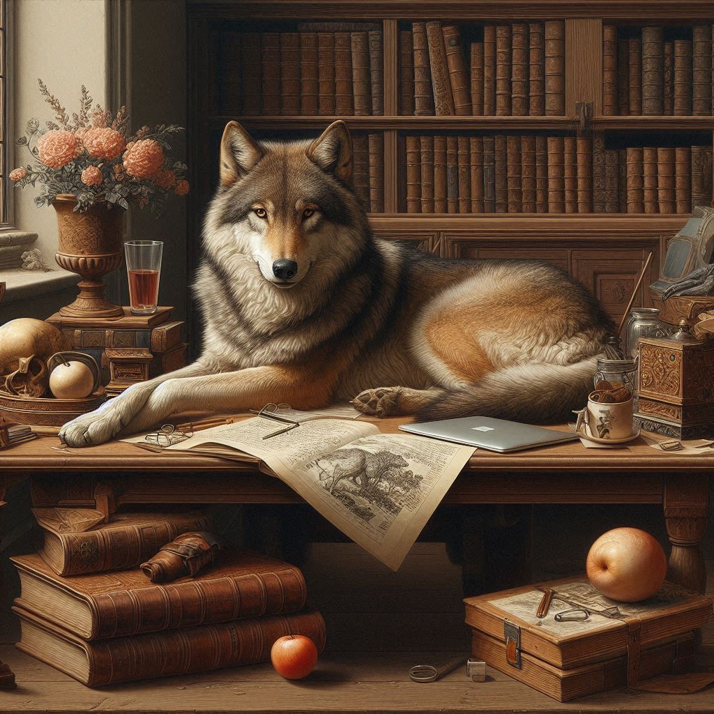 Работы волк разлёгся на столе,