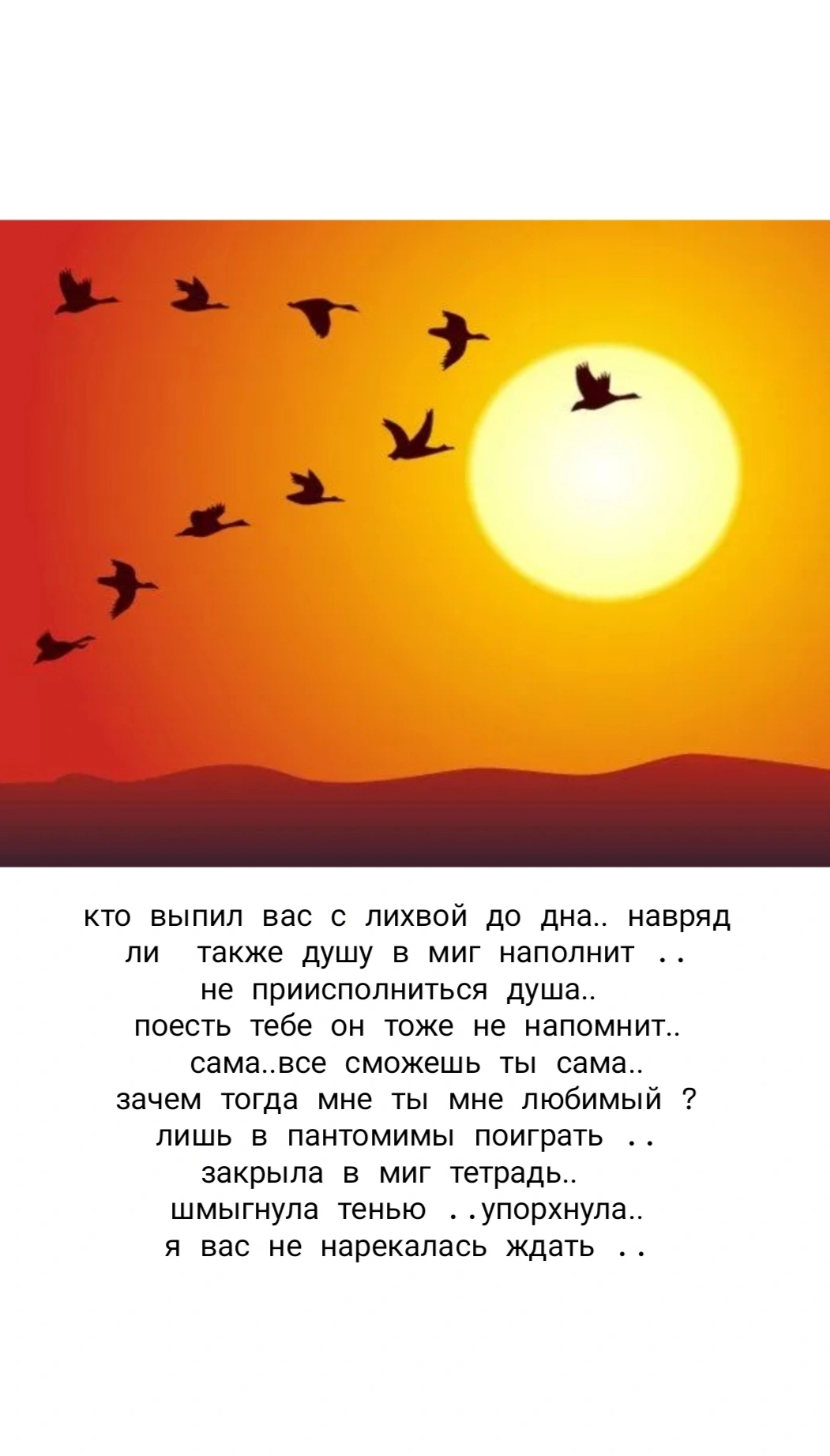 кто выпил вас с лихвой до дна.. навряд ли также душу в миг наполнит ..