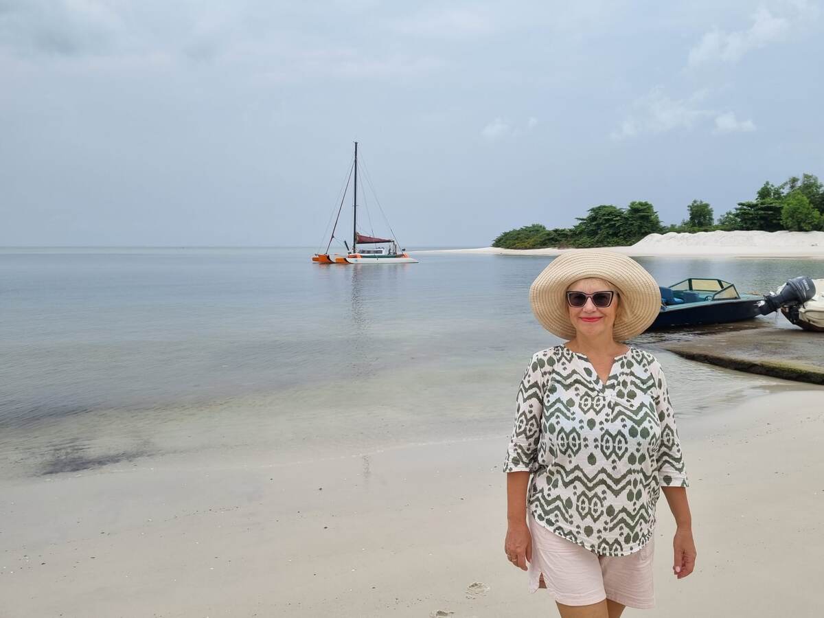 Мы гуляем вдоль берега, периодически муж залезает в воду, я тоже, потому что у берега мелко, метров 20 и океан абсолютно спокойный. За всю дорогу на берегу увидели парочку местных, на обратном пути двух француженок, они катались на лодке и в конце нашей прогулки - одного белого мужчину, который пришёл к океану со стороны отеля и плавал кролем примерно полчаса, без остановки. Я подумала, что он профессиональный пловец и местный, так как плавал он смело и заплывал очень далеко от берега.