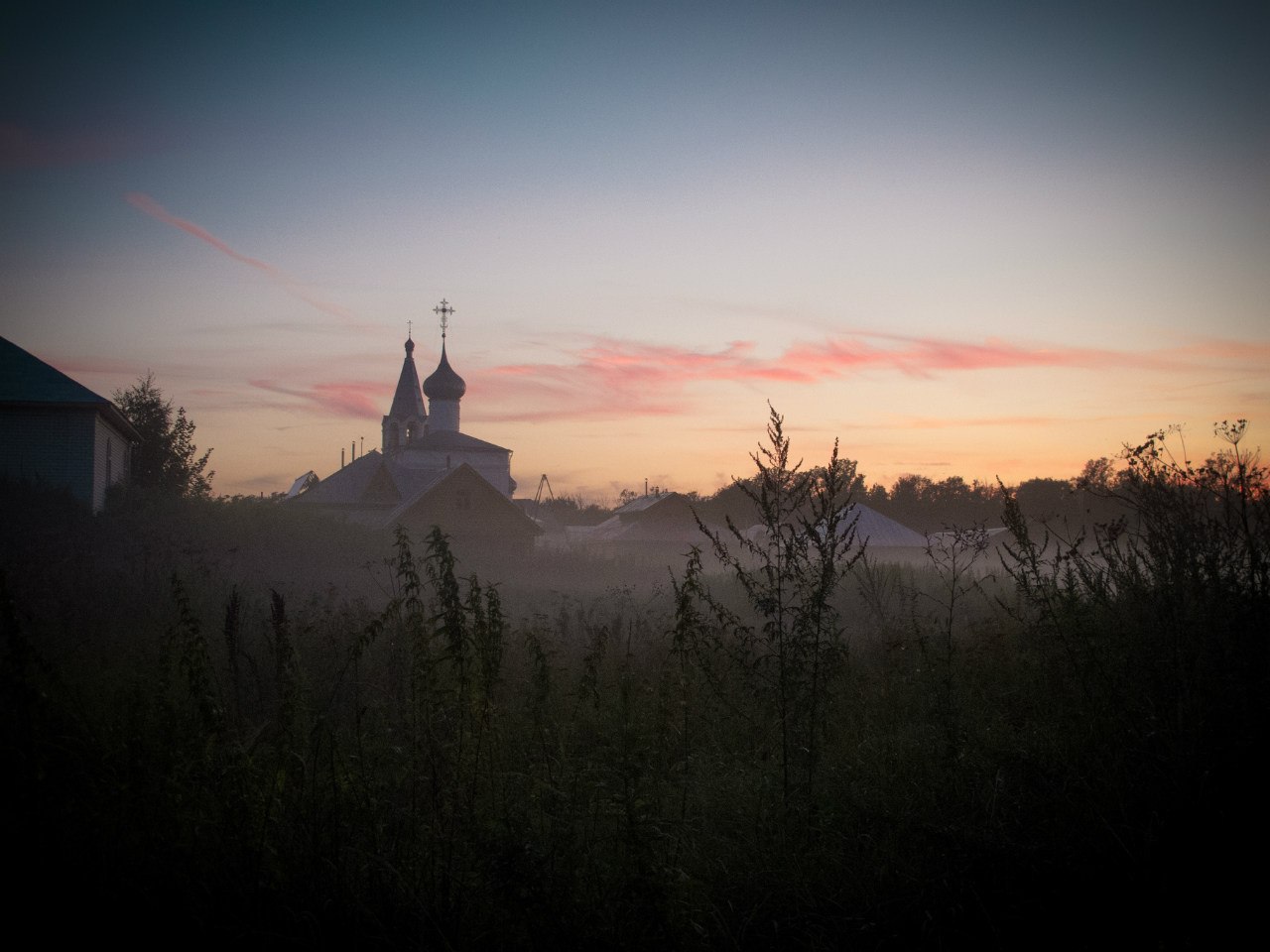 Река, сливаясь с сумеречным небом,