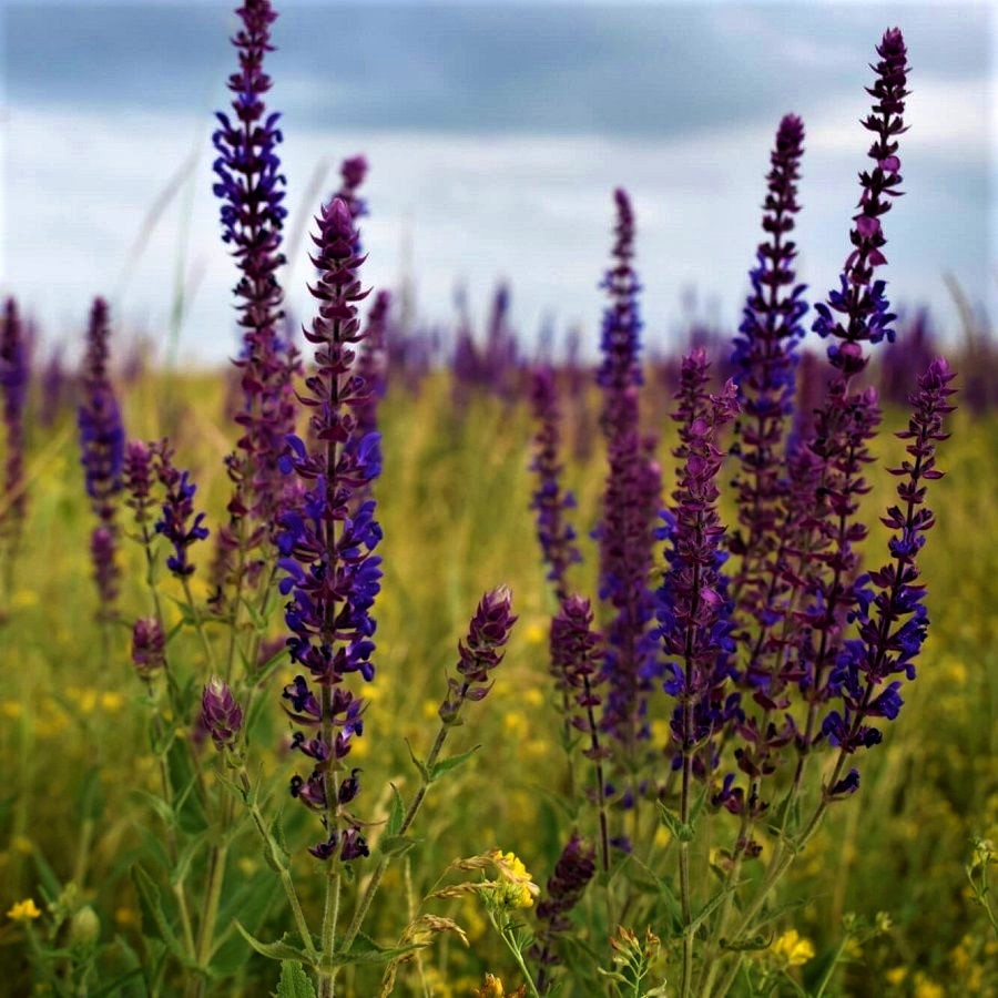 Разлился по лугу шалфей голубой.