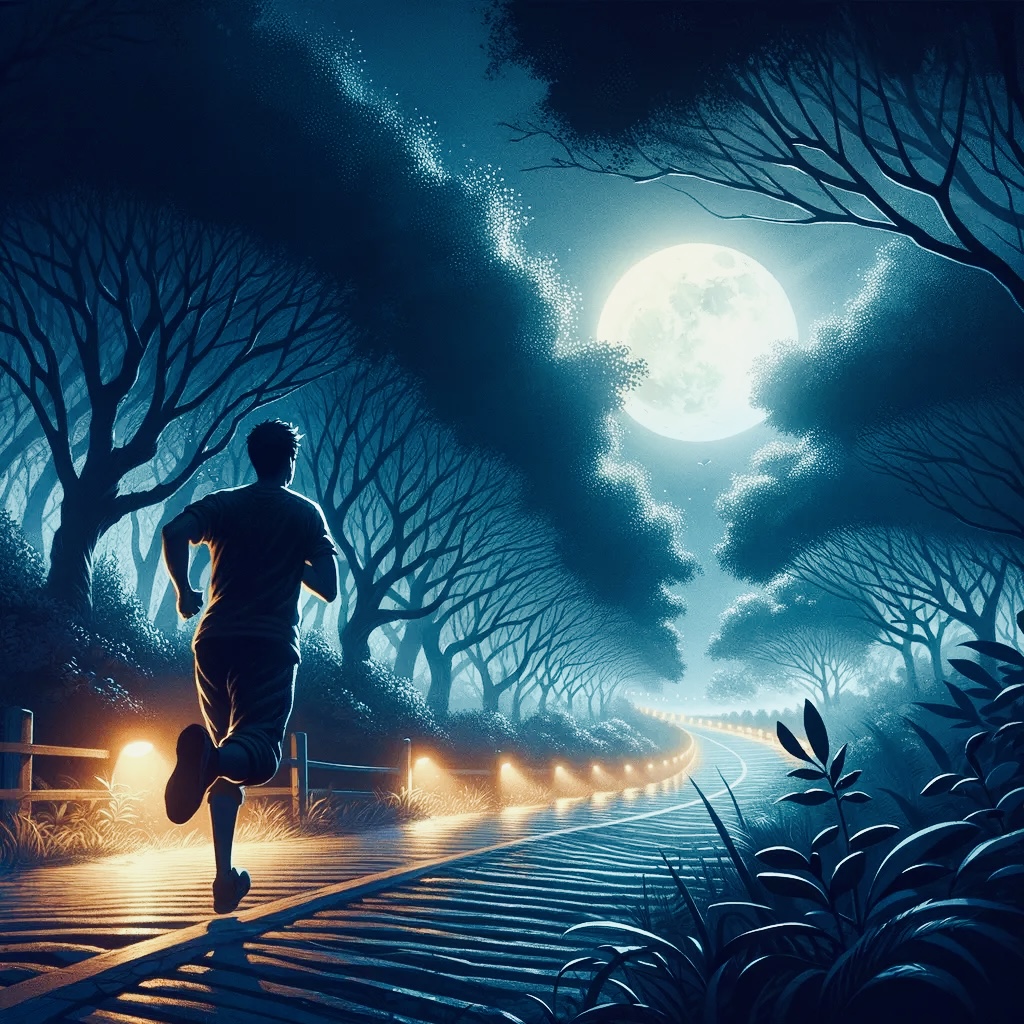 Бежит безмолвно человек.