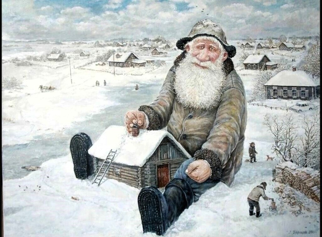 В тулупе дедушке тепло,