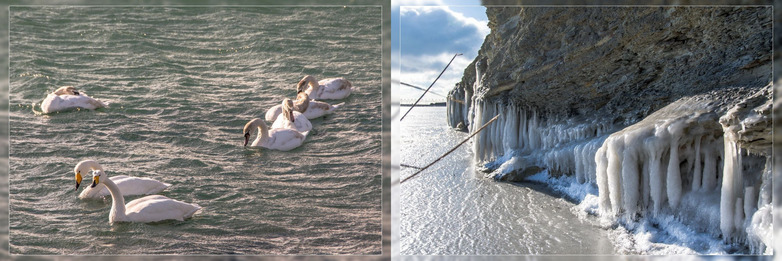 Фото: @Sega_Black_Sea — Лебеди прячутся от норд-оста за Суджукской косой в Чёрном море перед начинающимся штормом.