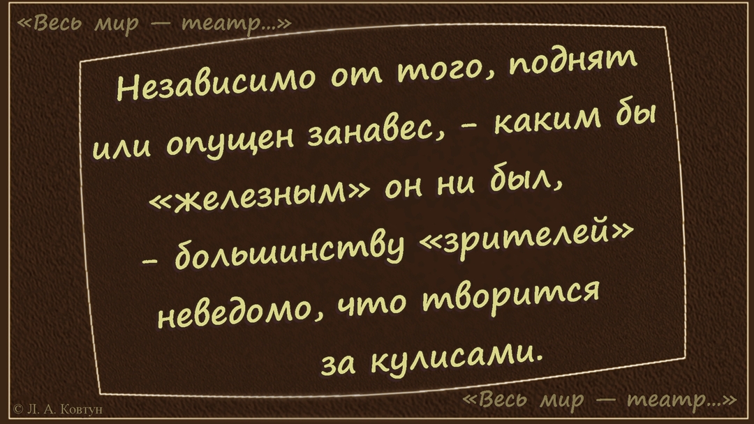 Независимо от того, поднят или опущен занавес, - каким бы «железным» он ни был, - большинству «зрителей» неведомо, что творится за кулисами.