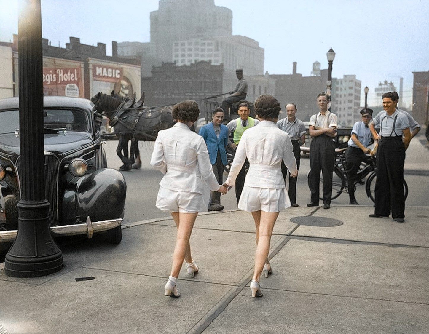 на улицы Торонто, в шортах.